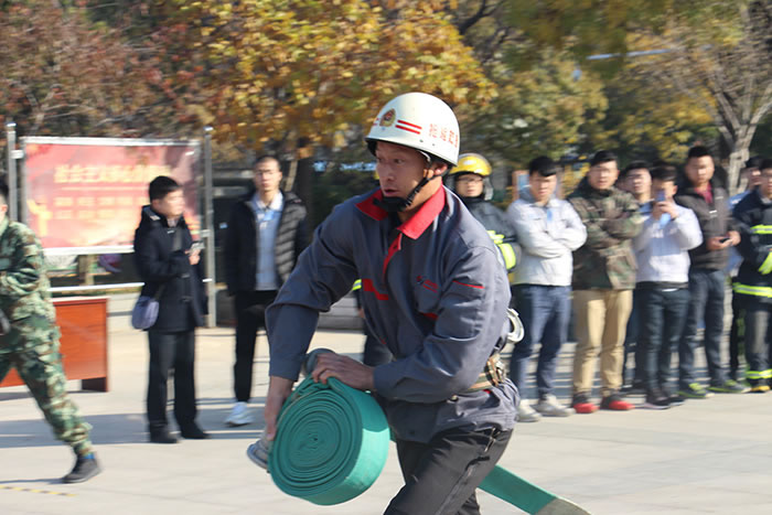 比武場上,昌達(dá)消防隊(duì)全體隊(duì)員不甘示弱,比技能、比耐力、比勇氣、比精神。