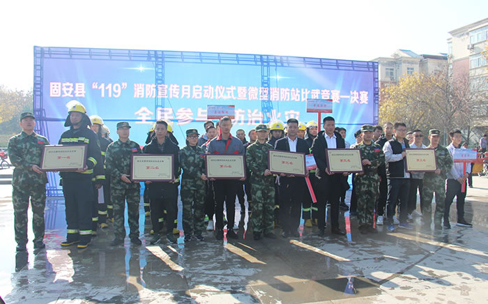 昌達(dá)消防隊(duì)馬隊(duì)長2018年11月9日,固安縣消防大隊(duì)在人民廣場隆重舉行了“固安縣微型消防站比武競賽”活動(dòng),來自固安各重點(diǎn)單位的12支微型消防站代表隊(duì)參加了激烈角逐。本次比賽設(shè)置了原地著消防防護(hù)服佩戴空氣呼吸器操,一人兩盤水帶連接操,負(fù)重100米跑,6樓負(fù)重登樓操,水罐消防車單干線出兩支水槍操,共5個(gè)科目。