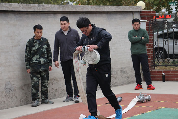本次比賽分為原地著消防防護服、一人兩盤水帶連接操、40米負重跑、消火栓連接水帶出水操4個比賽項目,比賽遵守安全第一,比賽第二的原則,旨在通過競技比拼的方式,進一步提高大家的專業(yè)技能及實踐水平。