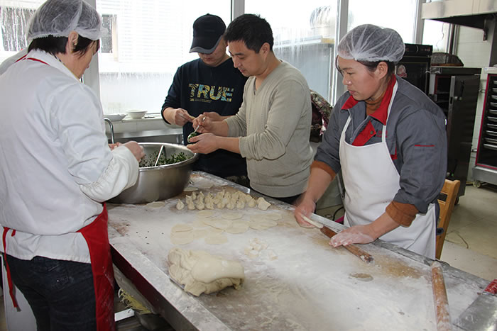 雖然天氣寒冷,但昌達(dá)集團(tuán)的餐廳里卻是一片熱火朝天的景象,大家興致勃勃,各自拿出看家本領(lǐng),發(fā)揮特長,分工協(xié)作,有的切菜、有的調(diào)陷,忙的不亦樂乎,包出來的餃子也是形態(tài)各異,有的形象逼真栩栩如生,有的皮薄餡大令人饞涎欲滴。