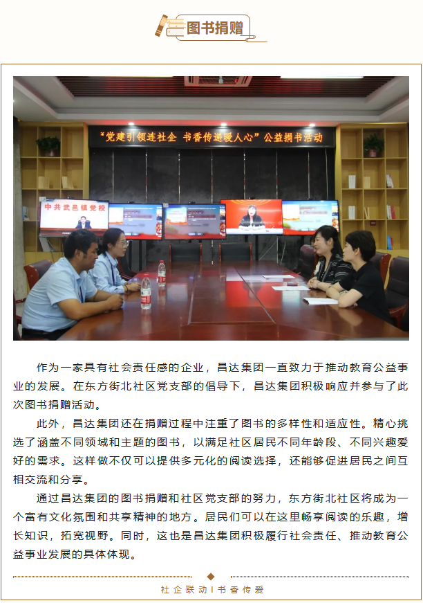 在昌達集團持續(xù)關(guān)注教育事業(yè)發(fā)展和回饋社會的初衷下,一場名為“黨建引領(lǐng)連社區(qū),書香傳遞暖人心”的圖書捐贈活動再度啟航。